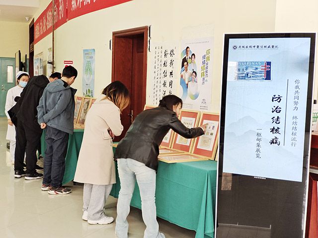 門診大廳舉辦的《結(jié)核病防治》專題郵票展,展示了國內(nèi)外早期和現(xiàn)代的有關結(jié)核病郵票和郵品計16個貼片,受到醫(yī)患的青睞,觀展者流連忘返。據(jù)悉,該郵集主要郵品有瑞士1913年發(fā)行的抵抗結(jié)核病明信片、中國1948年發(fā)行的“資助防癆”附捐郵票、秘魯1953年發(fā)行的較為罕見的“防肺結(jié)核兒童附捐”郵票,還有國家郵政局為安國醫(yī)院發(fā)行的個性化郵票等。