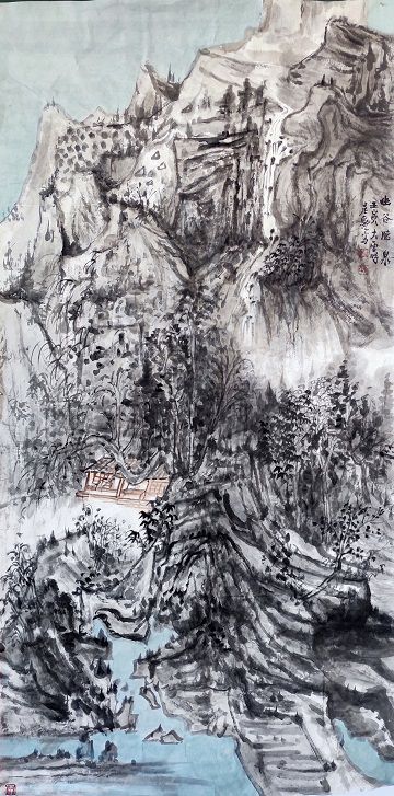 李志磊中國畫《幽谷聽泉》 138*69 厘米