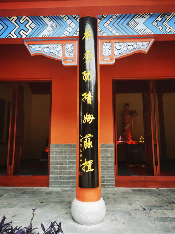 中央民族大學(xué)原副校長(zhǎng)黃鳳顯博士用古壯字為花神殿題寫的對(duì)聯(lián)下聯(lián):人間男女祖神分