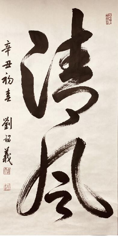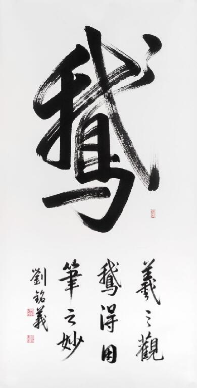 劉銘義將所悟出的王羲之筆法與中國社會科學院王鈞先生探討,王鈞先生對劉銘義所言王羲之運指筆法頗感興趣,隨提出“古今未見二王書風大字,你能書寫嗎”,劉銘義按王先生的提議,用悟出的王羲之筆法在各種紙上嘗試書寫王羲之書風大字,成功地將二王書風大字在生宣、熟宣及各種紙上再現(xiàn)出來。劉銘義在生宣紙上書寫50cm的二王書風大字,展示給王鈞先生,得到了王先生的高度評價。王鈞先生說:“劉銘義是我見到的最純粹的書法藝術(shù)家,他一心追求完美的書法藝術(shù),探索二王書法真諦,提出了二王書是手指運筆這一重要特點,他再現(xiàn)了二王書法的精華,形成了以靜為動超然物外的藝術(shù)風格”。劉銘義研究的王羲之書法用筆也得到了日本各界人士的關(guān)注。