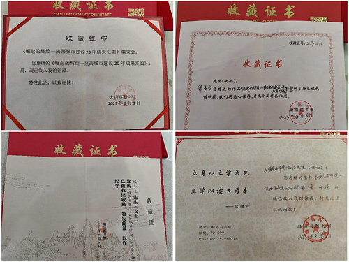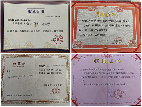 繼2023年2月9日,大型畫(huà)冊(cè)《崛起的輝煌一陜西城市建設(shè)20年成果匯編》編委會(huì)委托西北建設(shè)雜志社寶雞聯(lián)絡(luò)處主任魯宏偉為寶雞市圖書(shū)館捐贈(zèng)了畫(huà)冊(cè),市圖書(shū)館地方文獻(xiàn)中心主任姚凌娟接受捐贈(zèng)并為編委會(huì)頒發(fā)了收藏證書(shū)后,寶雞市渭濱區(qū)圖書(shū)館、鳳縣圖書(shū)館、金臺(tái)區(qū)圖書(shū)館、寶雞市鳳翔區(qū)圖書(shū)館、太白縣圖書(shū)館、隴縣圖書(shū)館、岐山縣圖書(shū)館、眉縣圖書(shū)館、麟游縣圖書(shū)館、寶雞市陳倉(cāng)區(qū)圖書(shū)館、千陽(yáng)圖書(shū)館、扶風(fēng)縣圖書(shū)館也收藏了大型畫(huà)冊(cè)《崛起的輝煌一陜西城市建設(shè)20年成果匯編》,并為編委會(huì)頒發(fā)了證書(shū)。姚凌娟代表市圖書(shū)館向《崛起的輝煌》編委會(huì)表達(dá)了謝意,感謝編委會(huì)對(duì)寶雞地方文獻(xiàn)工作的支持,并表示他們會(huì)及時(shí)將畫(huà)冊(cè)展閱給讀者,讓更多的讀者受益。