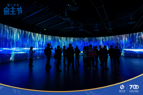 ▲窖主在360°沉浸式環(huán)幕秀場(chǎng)體驗(yàn)“活態(tài)雙國(guó)寶”魅力