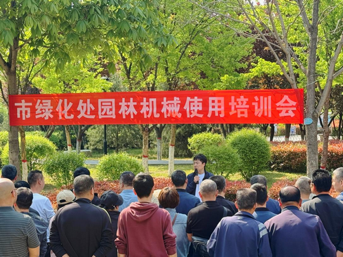 人間四月天,春季修剪正當(dāng)時。為了提升基層員工對新質(zhì)生產(chǎn)力的理性認(rèn)識,加強園林機械操作使用和維修能力培養(yǎng),減少故障保證安全提高工作效率,4月11日下午,咸陽市城市綠化管理處在絲路公園開展了“園林機械的使用與保養(yǎng)”工作技能培訓(xùn)活動,各隊所技術(shù)骨干約50名同志參加,相關(guān)科室也認(rèn)真做好服務(wù)保障工作。