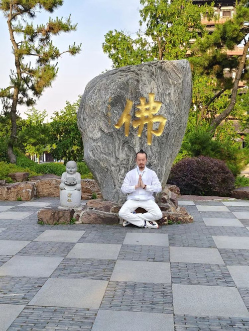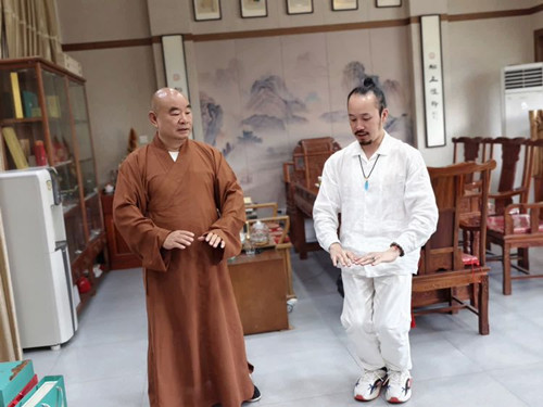 李偉淳老師與大明寺主持能修法師切磋太極功夫。