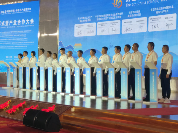 定西市人民政府副市長張強、中國醫(yī)藥物資協(xié)會道地藥材分會會長張聰、利君集團有限責(zé)任公司總經(jīng)理張亞濱、甘肅藥業(yè)投資集團有限公司黨委委員、副總經(jīng)理李儼鈞進行了合作簽約;同時,還進行了項目合作簽約?,F(xiàn)場共簽約中醫(yī)藥產(chǎn)業(yè)項目117個,簽約金額203.4億元。