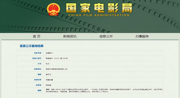 陜西重大水利改革題材電影《吃水》獲國(guó)家電影局批復(fù)并公示