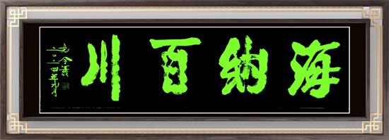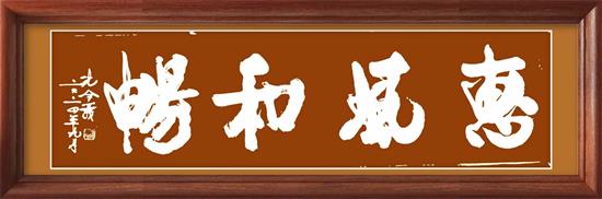 享譽(yù)海內(nèi)外的書法大家李鐸先生生前最以榜書大字著稱??琢盍x將軍學(xué)習(xí)老師的創(chuàng)作風(fēng)格藝術(shù),把老師榜書創(chuàng)作絕妙的筆法技巧運(yùn)用到自己新行楷體書法的研究創(chuàng)作中,所創(chuàng)作的作品四角挺立,渾厚飽滿,灑脫大度,氣勢(shì)恢宏。