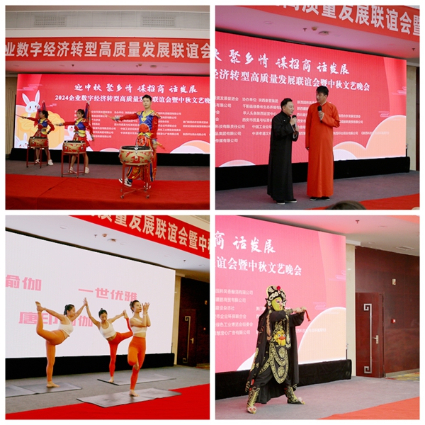 2024年9月13日下午,由陜西省企業(yè)引資發(fā)展促進(jìn)會主辦的“迎中秋、聚鄉(xiāng)情、謀招商、話發(fā)展”2024企業(yè)數(shù)字經(jīng)濟(jì)轉(zhuǎn)型高質(zhì)量發(fā)展聯(lián)誼會暨中秋文藝晚會在西安止園飯店貴賓樓3層會議室舉行。省市有關(guān)部門和協(xié)會領(lǐng)導(dǎo)嘉賓及企業(yè)家240余名人士參加了盛會。