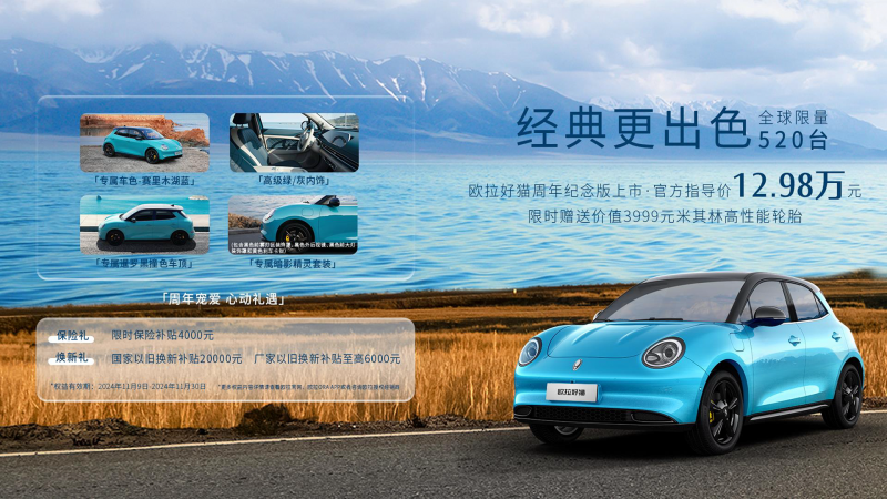 配備專屬“賽里木湖藍(lán)”車色 歐拉好貓周年紀(jì)念版出“色”上市