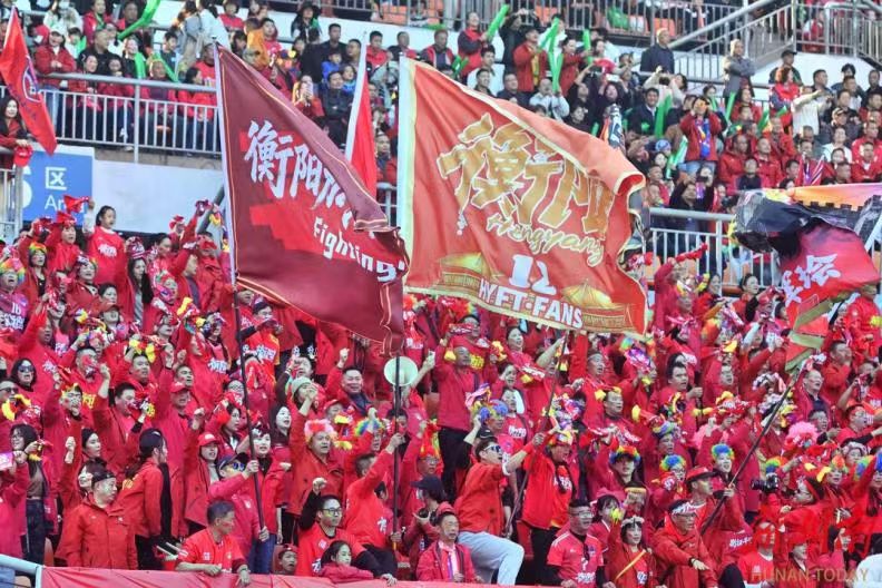 衡陽球迷為主隊(duì)加油。競技信仰和體育精神,也實(shí)實(shí)在在體現(xiàn)在賽場上。湘超各支球隊(duì)的戰(zhàn)術(shù)風(fēng)格,完美體現(xiàn)了勇往直前、敢打敢拼的湖湘特質(zhì)。比賽不管是輸是贏,隊(duì)友們一起奮斗、一起奉獻(xiàn),秉持永不言棄、團(tuán)結(jié)拼搏的精神。湘超中的年輕球員的表現(xiàn)也十分矚目,他們各有風(fēng)格和優(yōu)勢,有拼勁、有毅力,未來更有巨大的成長空間。球員個(gè)體表現(xiàn)相當(dāng)搶眼。比如衡陽隊(duì)的年輕球員吳夢豪貢獻(xiàn)了目前聯(lián)賽僅有的兩個(gè)“帽子戲法”之一,還有李炫、湯軍這些“小孩哥”,多次在關(guān)鍵戰(zhàn)役中破門,成為賽場上活力滿滿的“青春力量”,讓人看到了湖南草根足球的未來希望。