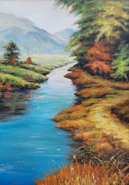 李新 油畫作品 《山水》