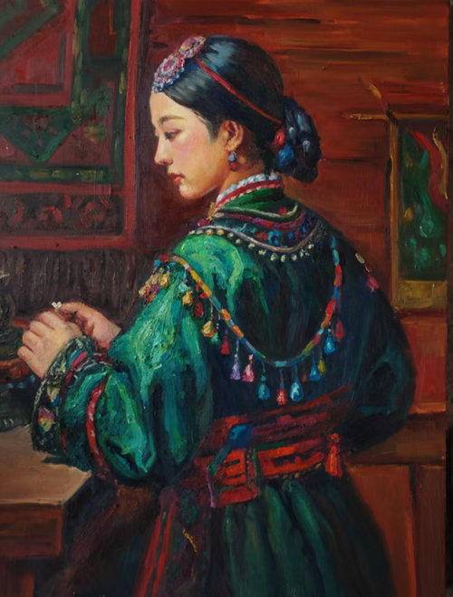 齊亮 油畫作品《少數(shù)民族女人》