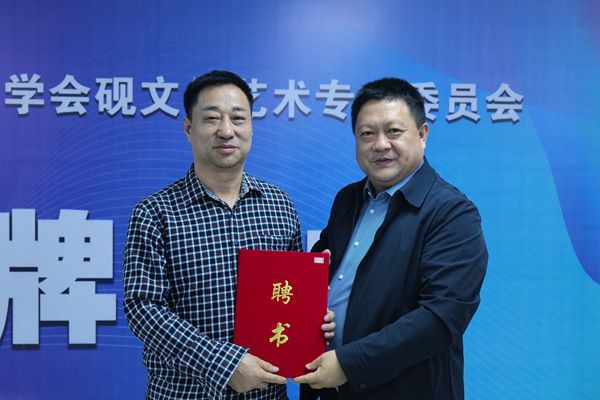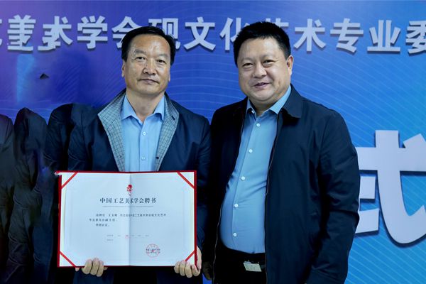 在熱烈的掌聲中,任建新副理事長(zhǎng)宣讀中國(guó)工藝美術(shù)學(xué)會(huì)《關(guān)于新建中國(guó)工藝美術(shù)學(xué)會(huì)硯文化藝術(shù)專業(yè)委員會(huì)的通知》,并向董方軍主任、張淑芬名譽(yù)主任頒發(fā)聘書。