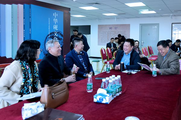 出席開館儀式的嘉賓有:北京愛心萬里公益基金會理事長萬伯翱、中華炎黃文化研究會會長李玉賦、中華炎黃文化研究會秘書長李英、中國工藝美術(shù)學(xué)會理事長才大穎、中國工藝美術(shù)學(xué)會副理事長任建新、中國園林博物館館長劉耀忠、央視書畫頻道董事局主席王平、故宮博物院研究員、北京硯文化發(fā)展研究會首席顧問張淑芬、中國工藝美術(shù)大師、北京硯文化發(fā)展研究會顧問石飚、北京硯文化發(fā)展研究會會長董方軍、北京硯文化發(fā)展研究會會長助理孫克利、中華炎黃文化研究會硯文化研究分會副會長蘇文源、北京硯文化發(fā)展研究會副會長金彤、中華炎黃文化研究會硯文化研究分會副會長王炳義、中華炎黃文化研究會硯文化研究分會榮譽會長侯建國、中華炎黃文化研究會硯文化研究分會榮譽會長江津、中華炎黃文化研究會硯文化研究分會榮譽會長孫望東、中華炎黃文化研究會硯文化研究分會榮譽會長劉欣欣、北京硯文化發(fā)展研究會秘書長陰巍、北京朝陽區(qū)崔各莊鄉(xiāng)何各莊村書記唐增濤、北京迪沃客文化發(fā)展有限公司總經(jīng)理王健、山東財經(jīng)大學(xué)藝術(shù)學(xué)院院長宋述林、河南澄泥文化研究院院長、河南工藝美術(shù)大師劉存獻、河北易水硯有限公司總經(jīng)理、硯藝術(shù)大師鄒洪利等有關(guān)領(lǐng)導(dǎo)近百人出席現(xiàn)場開館儀式,線上觀眾達數(shù)千人次?;顒佑杀本┏幬幕l(fā)展研究會會長助理孫克利主持。(文/郭毅 攝影/于江)
