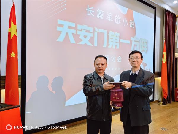 老兵潘磊在《天安門(mén)第一方陣》作品研討會(huì)活動(dòng)現(xiàn)場(chǎng)留影