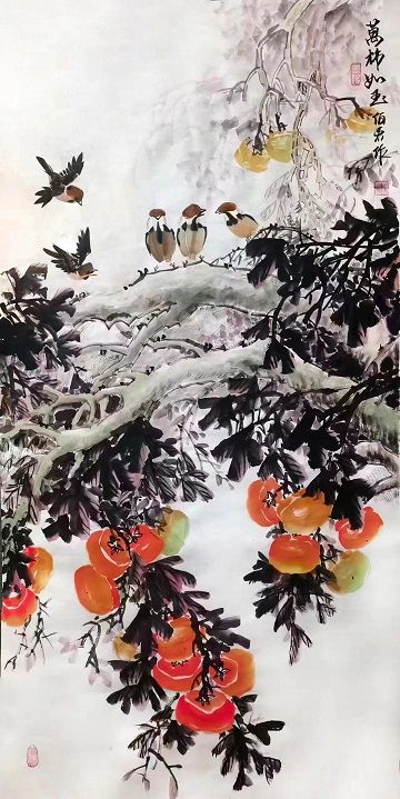 姚伯君 中國畫《豐碩》 138*69 厘米