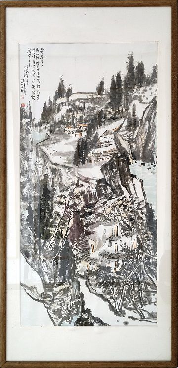 陸鴻義中國畫 《云山飛瀑》 138*69 厘米