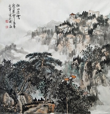 李珍軍中國畫 《秋山浮云》 69*69 厘米