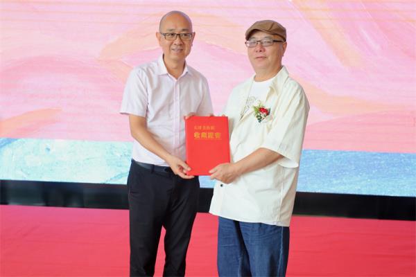 天津美術館館長馬馳代表天津美術館向藝術家王嘉陵頒發(fā)收藏證書▲