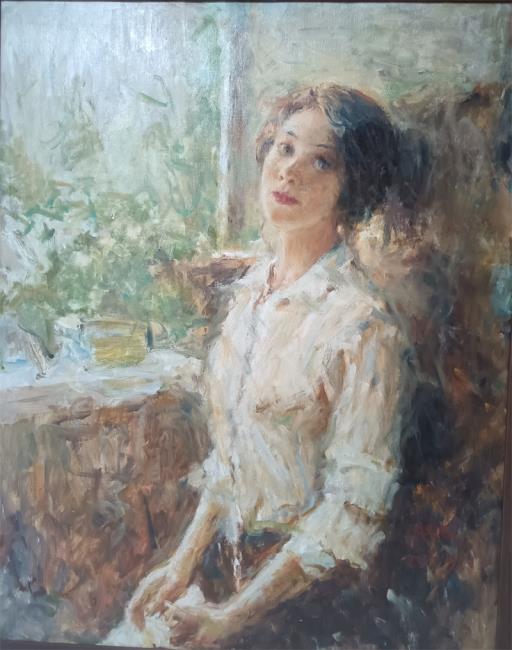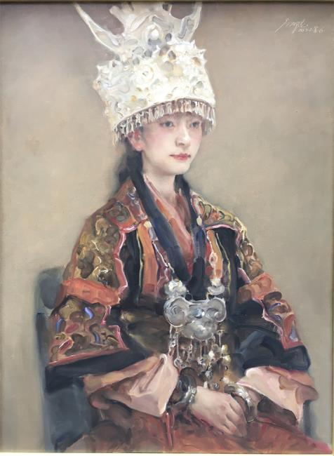 龐茂琨 端坐的苗女 60X80cm 2022 布面油畫▲