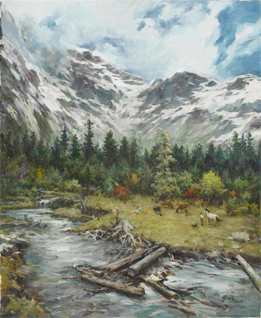 2004年創(chuàng)作《汶川山河》、《山間小屋》、《線條》、《山澗》、《藏區(qū)》等油畫作品。