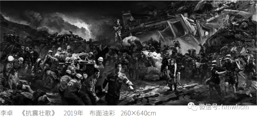 新中國災(zāi)難主題美術(shù)創(chuàng)作始終把抵抗災(zāi)難、戰(zhàn)勝災(zāi)難,對時代、對社會的認同與贊美作為創(chuàng)作的核心任務(wù)。這種情感既有其深厚的文化傳統(tǒng),也有其必然的現(xiàn)實依據(jù),究其根源,千百年來大一統(tǒng)文化中家國情懷與憂患意識的承傳,“文章合為時而著,歌詩合為事而作”的歷史使命感,以及百年來中國現(xiàn)代美術(shù)“關(guān)注現(xiàn)實、緊貼時代、為民族命運吶喊、謳歌昂揚向上的民族精神,倡揚為人生而藝術(shù),追求和諧、質(zhì)樸、清新的美學趣味”【1】潮流,建國以來社會主義現(xiàn)實主義文藝思想的實踐,特別是新時代“以人民為中心”的創(chuàng)作導(dǎo)向,成為藝術(shù)家們積極深入生活,表現(xiàn)時代的行動指南。使“為人民抒寫、為人民抒情、為人民抒懷”成為一種發(fā)自于內(nèi)心的真摯感情和自覺行動。“文變?nèi)竞跏狼椋d廢系乎時序”,每當中華民族到了危難的時候,更需要藝術(shù)對人心的召喚,需要對個體、民族、國家命運深刻把握的偉大作品,需要藝術(shù)家以深沉的家國情懷和悲憫之心,與國家和人民“同聲相應(yīng)、同氣相求、同命相依”,把個體的“小我”,融入到對“大我”的格外珍惜中,把“為時而著”作為自己義不容辭的使命,把傳達積極、樂觀、奮發(fā)向上的態(tài)度作為自己的責任,服務(wù)人民,謳歌時代。也只有這樣,才能在悲痛的廢墟上,孕育出絕美的風景,看到新生的希望,在苦難的回顧中反思生命和生存的本質(zhì)、展望人類未來的圖景。