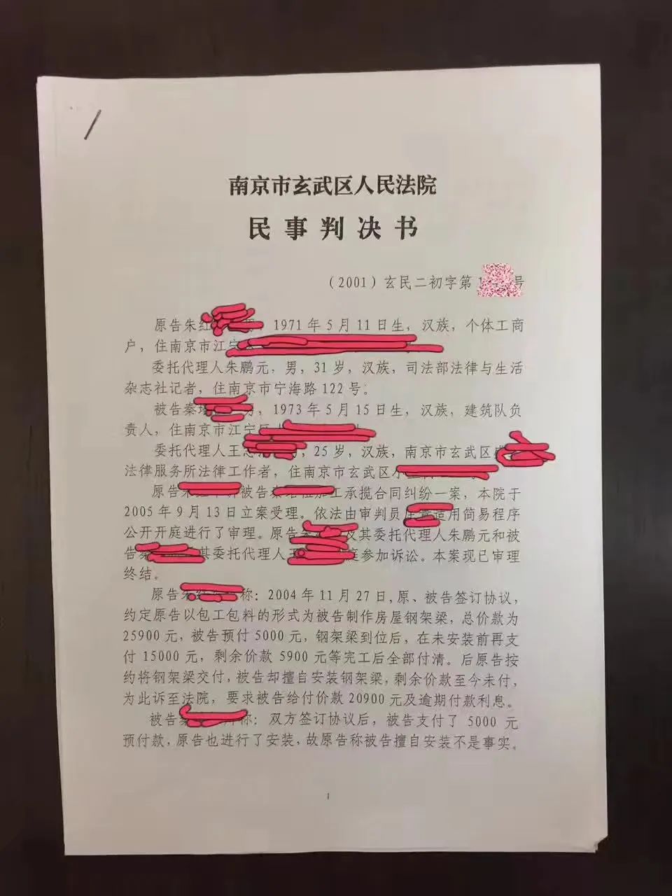 當時在法院訴訟時候,公民代理很普遍,不像如今障礙重重。一天,南京東郊一個千年古鎮(zhèn)上,一位本家商人通過朋友找到我,稱2萬元左右的工程款被江寧區(qū)某建筑隊負責人耍賴不給,希望我能幫我維權(quán),討回自己的血汗錢。