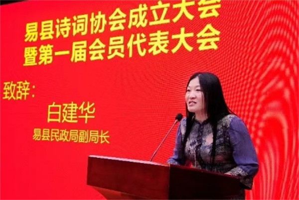 易縣民政局副局長白建華講話,她說,易縣是聯(lián)合國首批命名的千年古縣,文化底蘊深厚,2534平方公里廣袤的土地,8000多年人類文明史源遠流長,300多處歷史文化遺存,41處文明保護單位熠熠生輝,易縣詩詞協(xié)會的成立恰逢其時。她對詩詞協(xié)會提出要求,并有“四點建議”,希望易縣邁向詩詞蓬勃發(fā)展的新征程。