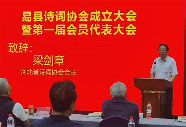 河北省詩詞協(xié)會副會長兼秘書長梁劍章副會長對易縣詩詞協(xié)會的成立提出了殷切希望,并抒懷賦詩一首: