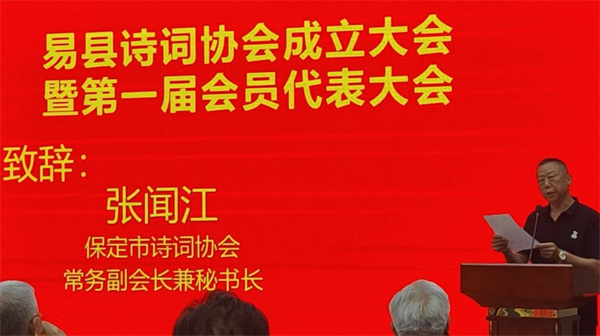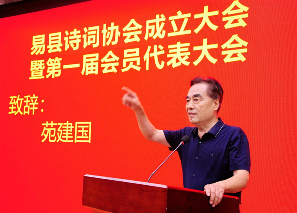 易縣籍原總參兵種部大校、軍旅書法家、詩人苑建國致辭。他說:易縣有詩有故事有歷史,易縣詩詞協(xié)會的成立,必將成為千年古縣的一道新的靚麗風(fēng)景線。