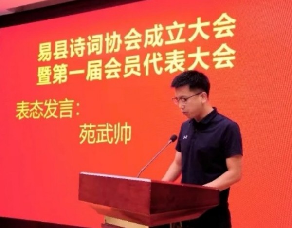 會議審議通過了《易縣詩詞協(xié)會章程》、《易縣詩詞協(xié)會成立大會選舉辦法》。采用舉手表決的形式,通過了易縣詩詞協(xié)會會長、副會長、秘書長的人選。苑武帥為會長、延碩、劉芳、張志華為副會長、孫冬梅為秘書長。會上聘請苑建國為總顧問、鄭德才、延常青為顧問。 當選的會長苑武帥表態(tài)發(fā)言。
