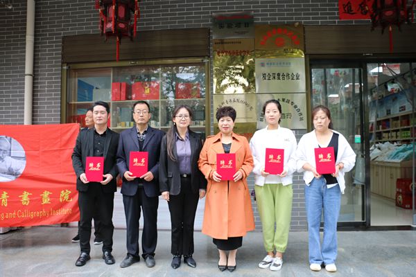 陜西柳青書(shū)畫(huà)院扶風(fēng)分院舉行揭牌儀式 2023/10/11 次瀏覽 2023年10月8日上午8:30,在扶風(fēng)縣消費(fèi)幫扶生活館,舉行了陜西柳青書(shū)畫(huà)院扶風(fēng)分院揭牌儀式。大約有40多位書(shū)畫(huà)愛(ài)好者參加了揭牌儀式。 書(shū)畫(huà)院秘書(shū)長(zhǎng)許衙評(píng)主持了揭牌儀式。 執(zhí)行院長(zhǎng)焦點(diǎn)(左三)和分院院長(zhǎng)王喜玲(右二)為扶風(fēng)分院揭牌,院長(zhǎng)劉義前(右)、常務(wù)院長(zhǎng)楊海琴(左二)等領(lǐng)導(dǎo)見(jiàn)證。 書(shū)畫(huà)院常務(wù)院長(zhǎng)楊海琴為扶風(fēng)分院院長(zhǎng)王喜玲、執(zhí)行院長(zhǎng)楊兆麗、常務(wù)院長(zhǎng)樊金明、秘書(shū)長(zhǎng)秋列俠、副院長(zhǎng)夏寒頒發(fā)了聘書(shū)。 扶風(fēng)縣讀書(shū)協(xié)會(huì)黨支部書(shū)記、會(huì)長(zhǎng)楊潤(rùn)杰筒要介紹了王喜玲的公司情況和王喜玲的先進(jìn)事跡。 陜西柳青書(shū)畫(huà)院扶風(fēng)扶風(fēng)分院院長(zhǎng)王喜玲表示:感謝所有支持開(kāi)辦書(shū)畫(huà)院的領(lǐng)導(dǎo),嘉賓以及贊助商。書(shū)畫(huà)藝術(shù)的傳承與弘揚(yáng)是炎黃子孫共同的責(zé)任,我們將盡心盡力地為廣大書(shū)法愛(ài)好者提供更好的服務(wù),展示、交流、挖掘、提高傳統(tǒng)文化的藝術(shù)價(jià)值,創(chuàng)造更好的學(xué)習(xí)環(huán)境,為弘揚(yáng)中華優(yōu)秀傳統(tǒng)文化,促進(jìn)鄉(xiāng)村的文明建設(shè),助力鄉(xiāng)村振興,奉獻(xiàn)力量。 陜西柳青書(shū)畫(huà)院院長(zhǎng)劉義前講話(huà)中說(shuō),柳青書(shū)畫(huà)院是普通老百姓的書(shū)畫(huà)院,希望所有成員要向人民作家柳青學(xué)習(xí),深入生活,貼近生活,創(chuàng)造出老百姓喜歡的正能量作品。 最后,院長(zhǎng)劉義前、書(shū)法家張鐵誠(chéng)和書(shū)畫(huà)家宋賓揚(yáng)現(xiàn)場(chǎng)揮毫潑墨,為承辦單位創(chuàng)作了數(shù)幅書(shū)畫(huà)作品。