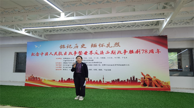 祭奠結(jié)束后,全體人員移步至《佟麟閣將軍紀(jì)念館》舉行莊嚴(yán)隆重的紀(jì)念儀式,民革海淀區(qū)工委副主委宋志紅在致辭中表示重溫歷史,緬懷英烈,是為了堅(jiān)守和傳承中國人民英勇的抗戰(zhàn)精神。今年9月,鄭建邦主席在民革市委會(huì)“凝心鑄魂強(qiáng)根基、團(tuán)結(jié)奮進(jìn)新征程”主題教育宣講報(bào)告會(huì)上指出,圍繞政治堅(jiān)定、組織堅(jiān)實(shí)、履職有力、作風(fēng)優(yōu)良、制度健全,努力把民革打造成為高水平的新時(shí)代中國特色社會(huì)主義參政黨。民革海淀區(qū)工委婦女與老齡委員會(huì)副主任宋敬可獻(xiàn)上原創(chuàng)詩歌朗誦《在英雄的墓碑前》,深情的表演感染了現(xiàn)場(chǎng)的每一位觀眾?!顿△腴w將軍紀(jì)念館》為海淀區(qū)愛國主義教育基地,副館長(zhǎng)苑建國向大家介紹了紀(jì)念館建設(shè)的歷史沿革和動(dòng)人故事。佟麟閣將軍嫡孫佟曉冬充滿激情地講述了祖父的戰(zhàn)斗事跡,擔(dān)當(dāng)精神,佟曉冬表示抗戰(zhàn)中涌現(xiàn)出無數(shù)與祖父一樣為國捐軀的英雄和無名英雄,作為后代必將賡續(xù)先輩的精神。