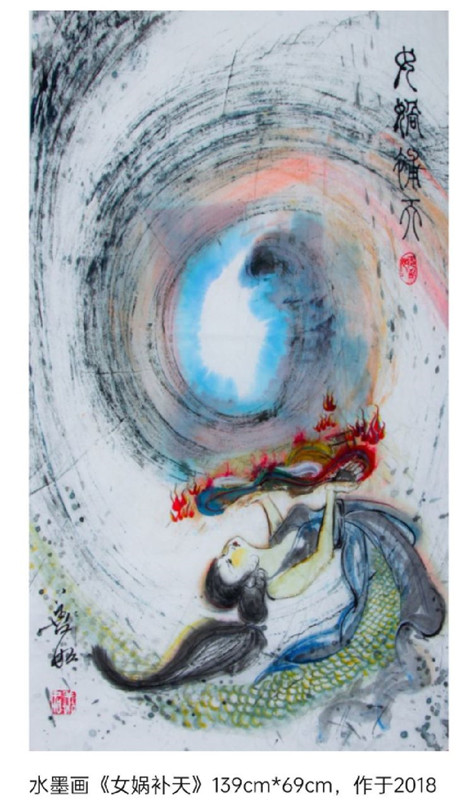 2021年8月參展助力冬奧北京外交公館畫展?!队旰蟠褐瘛繁幻锴笏勾笫故詹?。