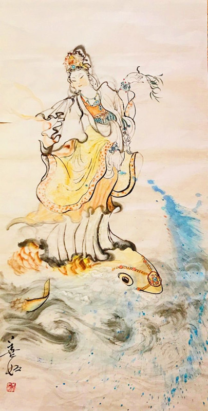 2020年12月,參展東華禪寺畫院第五屆畫展,《白度母》拍賣善款捐兩院建設(shè)。
