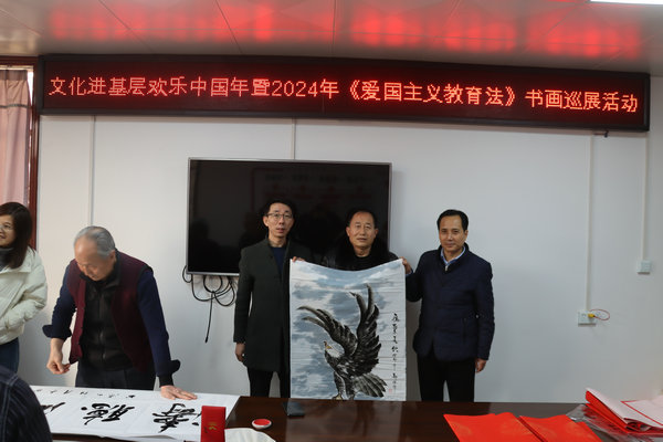 1月26日,由陜西省愛國主義志愿者協(xié)會主辦、咸陽市羊毛灣水庫管理中心承辦,陜西愛國實業(yè)有限公司、陜西大景微環(huán)??萍加邢薰尽⑽靼阐溚佧溈苏褂[展示服務有限公司、陜西三秦市政文化傳媒有限公司協(xié)辦的“文化進基層歡樂中國年”暨2024年《愛國主義教育法》書畫巡展活動在咸陽市羊毛灣水庫管理中心舉行,協(xié)會副會長許衙評、鄭偉亭,中心主任劉大慶等領導、書畫家和中心機關大院60余人參加。據(jù)悉,這是咸陽水利系統(tǒng)首家舉辦愛國主義教育法書畫巡展的單位。伍曉燕主持活動。