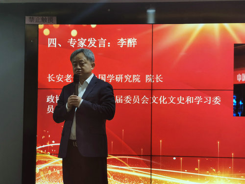 接著,研究院秘書長李豫成作總結(jié)報告,他以詳實的數(shù)據(jù)列舉了研究院在國學(xué)傳承、學(xué)術(shù)研究、社會服務(wù)等方面的卓越成績。他說西安終南山國學(xué)管理研究院自成立以來,致力于發(fā)掘國學(xué)精粹內(nèi)涵,弘揚傳統(tǒng)文化。通過立足國學(xué)學(xué)術(shù)傳統(tǒng)、發(fā)揚地域研究優(yōu)勢、開展國際交流,該研究院在西安社科文化界贏得了口碑和認(rèn)可。