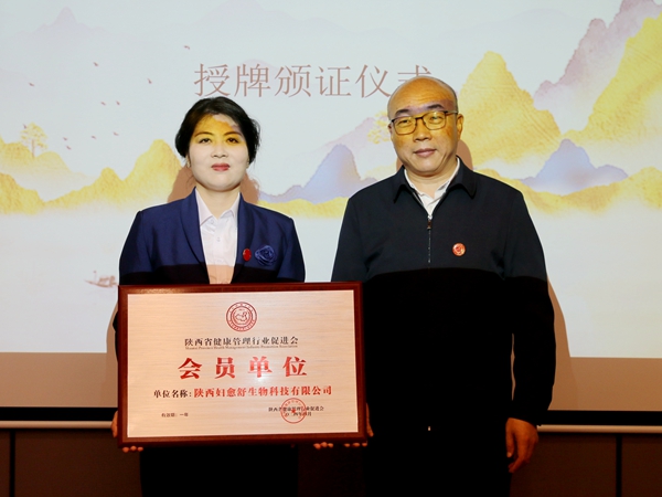 陜西省健康管理行業(yè)促進(jìn)會會長楊彥玉宣讀促進(jìn)會文件,并和促進(jìn)會秘書長一起授予陜西婦愈舒生物科技有限公司會員單位牌匾和會員證書,聘用羅鎂欣同志為促進(jìn)會理事。