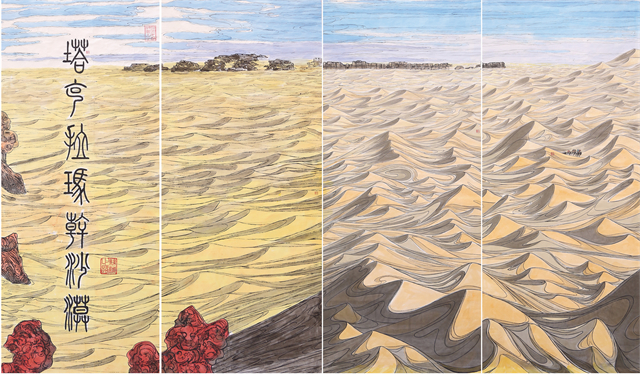 由帕米爾、昆侖、塔克拉瑪干沙漠、天山、祁連山、河西走廊、黃土高原、八百里秦川等30個(gè)分段總長558米的絲綢之路是《中華江山圖》中最長的一段。