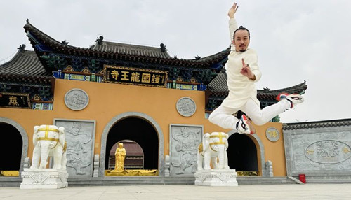 李偉淳老師與大明寺主持能修法師切磋太極功夫。