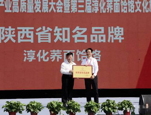 本次淳化蕎面饸饹獲得陜西省知名品牌,是在6月份,由來自我省品牌評(píng)價(jià)委員會(huì)專家通過對(duì)農(nóng)產(chǎn)品地理標(biāo)志、制作工藝、生產(chǎn)規(guī)模、蕎面研發(fā)等方面嚴(yán)格審核,按照《農(nóng)產(chǎn)品、農(nóng)副產(chǎn)品評(píng)價(jià)規(guī)范》,并向社會(huì)公示,確定“淳化蕎面饸饹”品牌為陜西省知名品牌。陜西省企業(yè)品牌建設(shè)促進(jìn)會(huì)高級(jí)顧問局執(zhí)行主席、省人大常務(wù)委員、外事僑務(wù)委員會(huì)主任董憲民向淳化縣委副書記相俊授牌,并宣讀了《關(guān)于淳化蕎面饸饹評(píng)價(jià)為陜西省知名品牌的通報(bào)》。通報(bào)中指出,“淳化蕎面饸饹已建成一個(gè)具有引領(lǐng)作用,推動(dòng)縣域經(jīng)濟(jì)發(fā)展的產(chǎn)業(yè)和品牌”。充分肯定了淳化縣在品牌建設(shè)中做出突出貢獻(xiàn)。陜西省企業(yè)品牌建設(shè)促進(jìn)會(huì),將把淳化蕎麥產(chǎn)業(yè)品牌推向全國(guó)、推向世界。