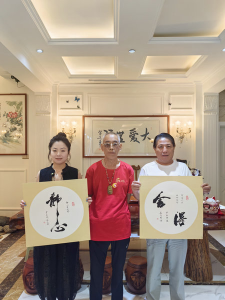 抵達西寧后,牡丹仙子張利老師現(xiàn)場潑墨,一幅盛開在筆墨之間的國畫牡丹映入眼簾,氣韻生動色彩斑斕,將自然之美凝固在紙上,成為永恒的詩篇。國家一級書法家姜志明老師現(xiàn)場題詞“聽習(xí)主席話,跟共產(chǎn)黨走”將尋美中國的核心理念表現(xiàn)的淋漓盡致。國家一級美術(shù)師、中書協(xié)會員張根明老師也奉上了“知行合一”等作品。恰逢八一,軍旅書畫家工作委員會副主任沈兆新帶領(lǐng)書畫家李發(fā)倉、張根明、張思張、張小偉、陳長生、石愛民、王月幫、馬克錦、高海萍、吳萬里、以及太陽導(dǎo)演等人,在愉快歡樂的氛圍中共同迎接八一建軍節(jié)的到來。在場的各級領(lǐng)導(dǎo)對本次紅色文化主題活動提出了一些寶貴的意見建議,全方位支持本次活動!