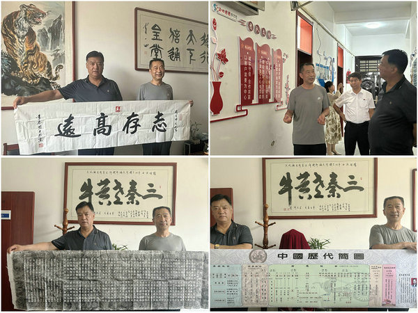 活動(dòng)期間,沈兆新為許衙評(píng)贈(zèng)送了國(guó)防大學(xué)客座教授、中國(guó)書(shū)畫(huà)家聯(lián)誼會(huì)副主席、世界華僑華人社團(tuán)聯(lián)合總會(huì)愛(ài)國(guó)宣傳委員會(huì)主任李春明將軍書(shū)寫的作品《志存高遠(yuǎn)》,許衙評(píng)為沈兆新回贈(zèng)了已92歲的岳父、民間歷史學(xué)家、書(shū)法家吳志琪書(shū)寫并編撰的韻文詩(shī)《中國(guó)朝代繁衍》和繪制的《中國(guó)歷代簡(jiǎn)圖》。