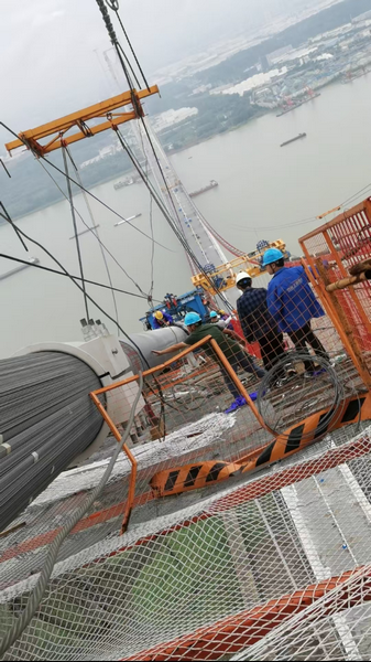2019年10月公司中標(biāo)世界級懸索橋項目——南京仙新路過江通道,我被調(diào)來負(fù)責(zé)北岸工作??缃髽驗橹骺?760米的雙塔單跨懸索橋,當(dāng)前跨徑在同類橋型中居于國內(nèi)第一、世界第二。新材料、新技術(shù)、新工藝、新設(shè)備在仙新路項目得到了研發(fā)和應(yīng)用,為今后大跨徑橋梁的施工起到引領(lǐng)作用,積累了施工管理經(jīng)驗。