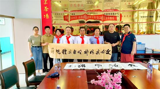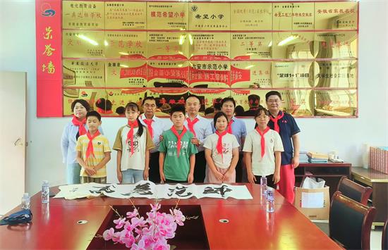 活動(dòng)期間,老兵潘磊與諸位藝術(shù)家一行與校方進(jìn)行了友好溝通,并與學(xué)生進(jìn)行了互動(dòng),互動(dòng)期間學(xué)生為到場(chǎng)所有人員佩戴了紅領(lǐng)巾,藝術(shù)家們?yōu)樾7劫?zèng)送了鼓勵(lì)學(xué)好文化課等內(nèi)容的書(shū)法作品。