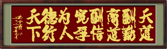 當(dāng)下的中國(guó)是中國(guó)歷史上又一個(gè)鼎盛偉大的時(shí)代,這是一個(gè)思想解放,文化開放,經(jīng)濟(jì)發(fā)展,十四億多人民不斷趕超世界強(qiáng)國(guó),能夠揚(yáng)眉吐氣,安居樂業(yè)生活的偉大時(shí)代,這個(gè)時(shí)代一定是能夠在歷史上留下濃墨重彩的篇章的時(shí)代。書法作為記載歷史傳承文化的重要工具之一,在這個(gè)偉大時(shí)代一定會(huì)有重大的創(chuàng)新發(fā)展。新中國(guó)成立七十多年來(lái),千百萬(wàn)書法家和愛好傳統(tǒng)文化的人們都在潛心挖掘,努力探索中國(guó)書法的發(fā)展已有很多研究成果,受到社會(huì)的認(rèn)可和肯定。將軍書法家孔令義提出理念并創(chuàng)立的新行楷體書法,也與眾多研究成果一樣,逐漸得到社會(huì)大眾的肯定和認(rèn)可,并已經(jīng)成為廣為流傳的書體。