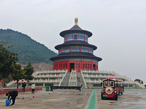 宜陽(yáng)靈山風(fēng)景區(qū)因靈山寺每年正月的觀音廟會(huì)聞名遐邇。靈山寺又名報(bào)恩寺,始建于金大定三年(公元1163年),距今已有800多年。靈山西側(cè)黃帝山峻峭入云,東側(cè)雞冠山薇薇壯觀,山下亭臺(tái)水榭,一汪碧波蕩漾。唐朝詩(shī)人張九齡曾有詩(shī)曰:“靈山多秀色,空水共氤氳。”來(lái)贊美靈山,莊嚴(yán)靜美的藥師佛殿就坐落在靈山寺風(fēng)景區(qū)的西峰。