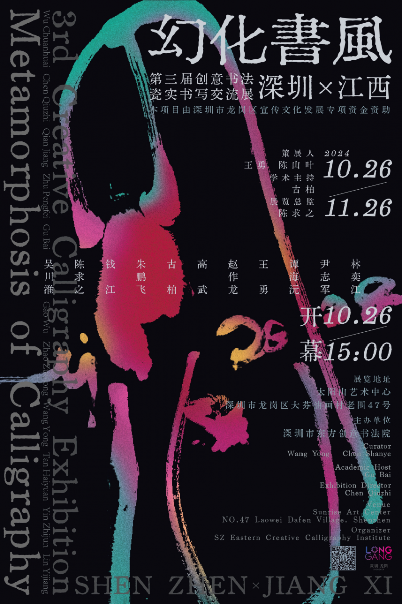 2024年10月26日下午三點(diǎn),第三屆創(chuàng)意書法——幻化書風(fēng)「深圳×江西」瓷實(shí)書寫交流展在深圳市太陽(yáng)山藝術(shù)中心隆重開展。創(chuàng)意書法交流展以雙城記為主題,突出與展示兩座城市的文化特色和兩地書法藝術(shù)的異同與交流融合;前兩屆展覽于藝術(shù)界已積累了一定的口碑與粉絲群體;第三屆創(chuàng)意書法展承續(xù)兩屆的創(chuàng)意書法研學(xué)與展覽成果、經(jīng)驗(yàn)與影響力,書法界反響積極。