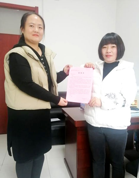 王紅向劉潤(rùn)(右)送上感謝信