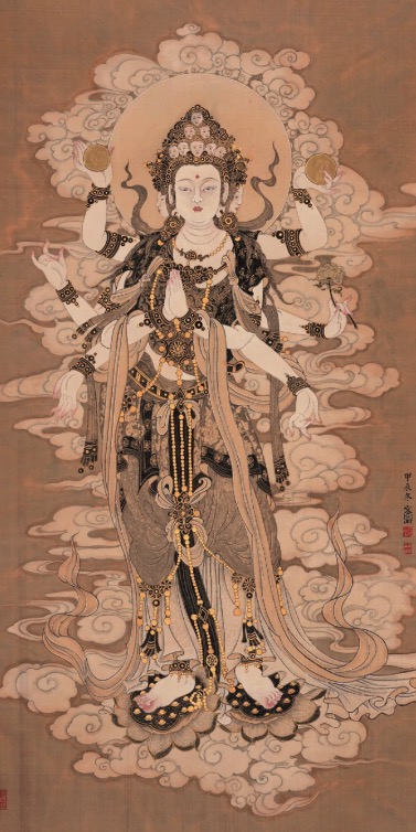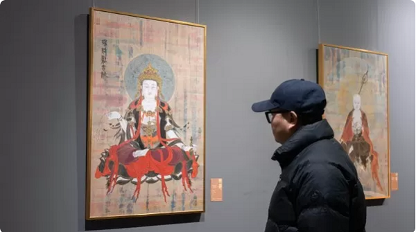 12月24日,“請(qǐng)福——王文濤金妝素衣畫展”在北京開幕,以動(dòng)物畫著稱的青年畫家王文濤首次推出“金妝素衣”系列人物畫作品30余幅,精雕細(xì)琢之處體現(xiàn)了畫家的不斷攀登藝術(shù)高峰的心路歷程。他的作品不僅追求外形之美,更注重內(nèi)蘊(yùn)精神的呈現(xiàn),展現(xiàn)出對(duì)佛教文化的深刻理解和對(duì)人性光輝的不懈探索。